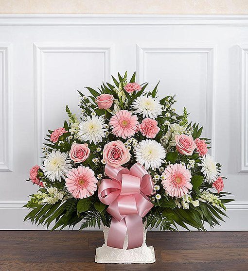 Sympathy Floor Basket - Pink & White